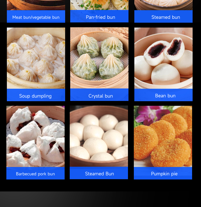 Output Capacity: Buns 0-3600 pieces/h, steamed buns 2000-7200 pieces/h
