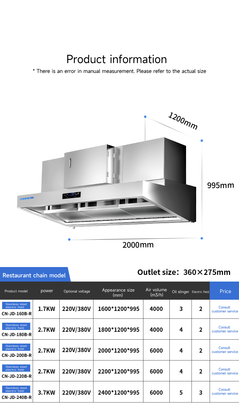 CHINENG will upgrade the product specifications from time to time according to the market feedback. The parameters on the page may not be updated in time, so the specific parameters are based on the real products. At the same time, there are many kinds of commercial kitchen equipment, and some products do not appear on the page. If you have equipment needs or customized services, please add the customer service WeChat below for detailed consultation. Thank you for coming!
