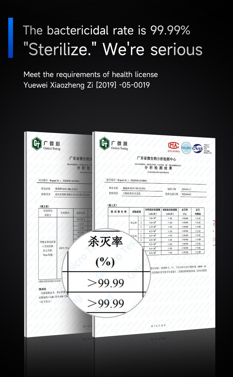 Sterilization method: Ozone + ultraviolet + drying