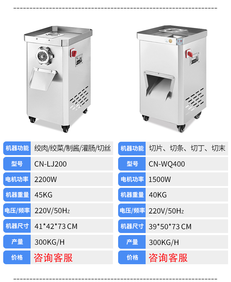 机器功能:绞肉/绞菜/制酱/灌肠/切丝